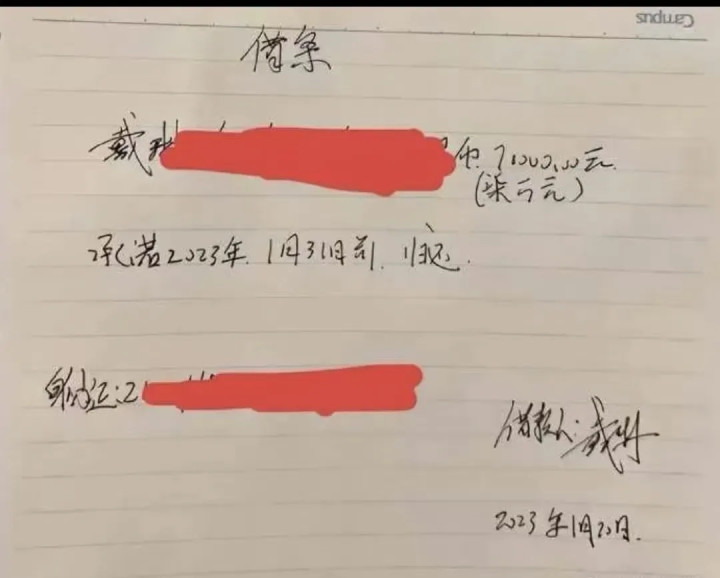 戴琳手写的借条